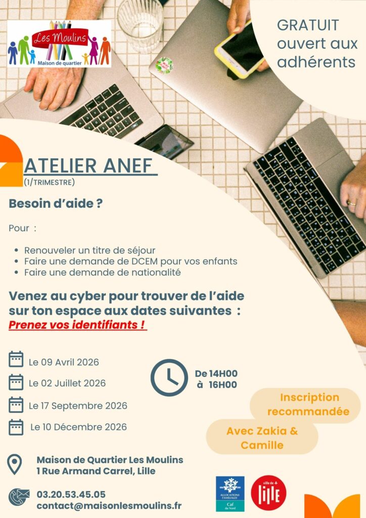 La Maison de quartier Les Moulins vous propose un atelier ANEF