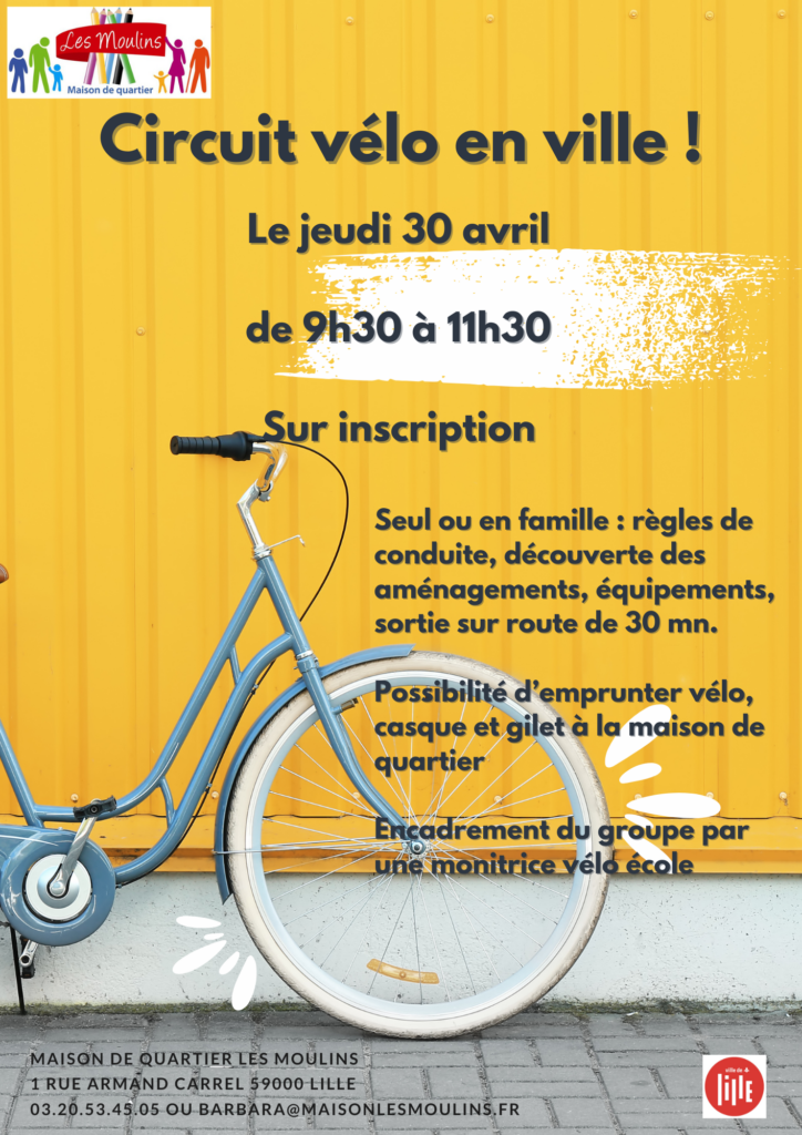 La Maison de quartier Les Moulins vous propose de découvrir les règles de conduite, les aménagements, les équipements et les sorties sur route de 30 minutes :